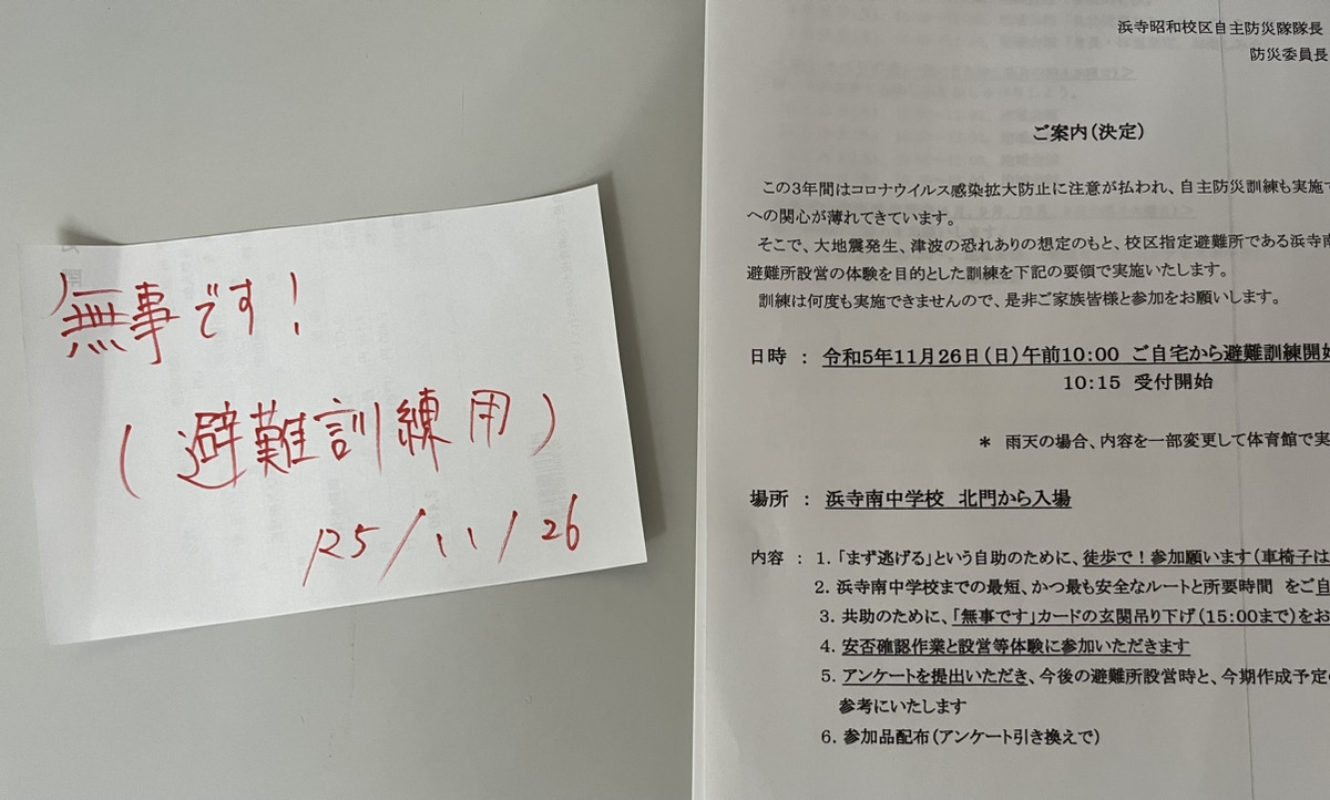 小学校2年生の時に阪神淡路大震災を経験しました。こういった取り組みを行うことで有事に備えたいものです。
