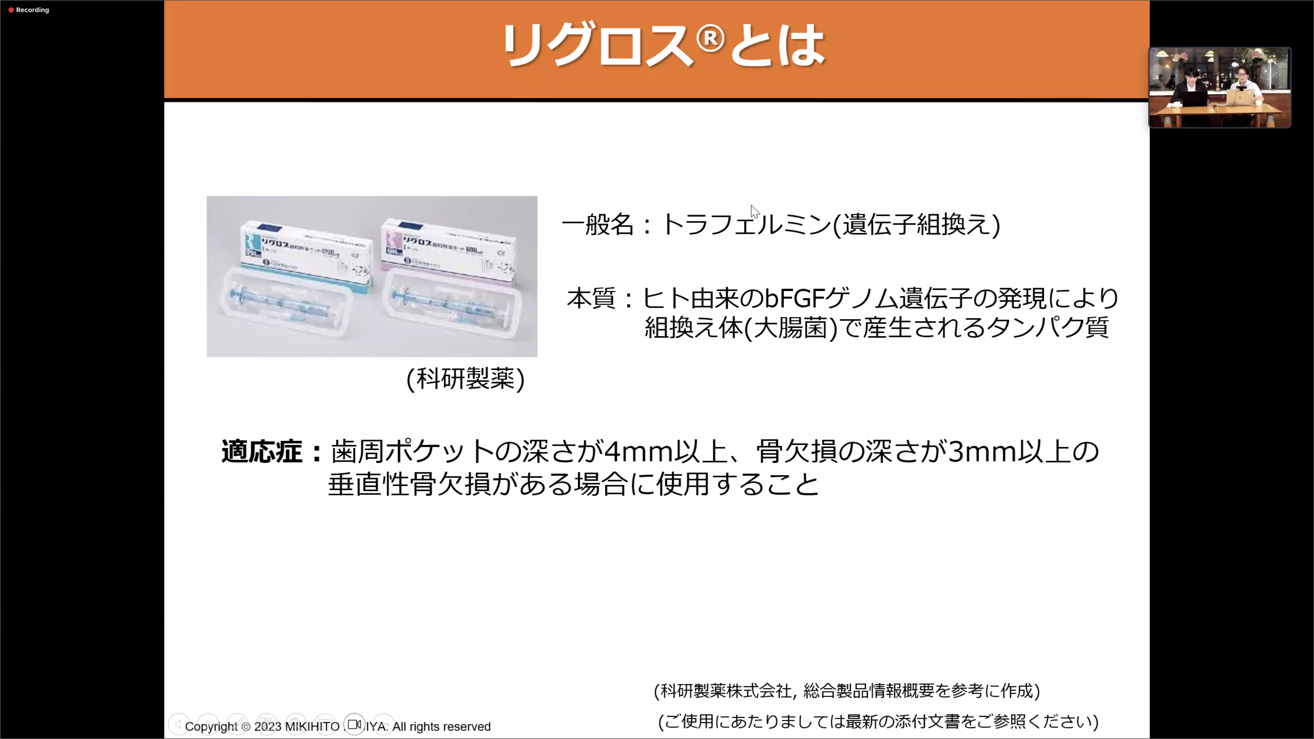 「歯周組織再生医薬品」とのこと。保険適応の医薬品です。