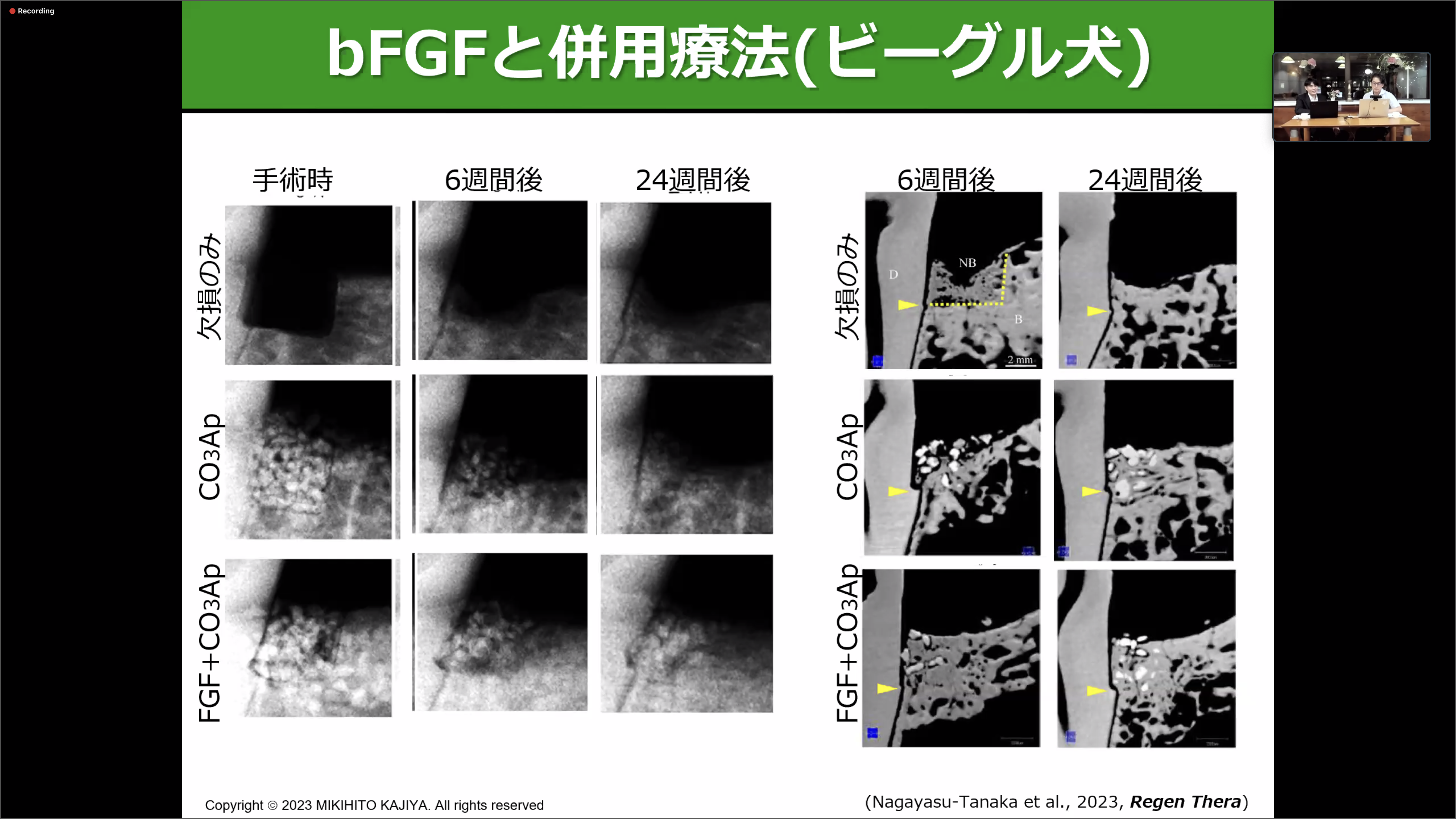 - 歯槽骨、セメント質及び歯根膜の再生を促進し、結合組織性付着を形成させます。(in vitro、in vivo)