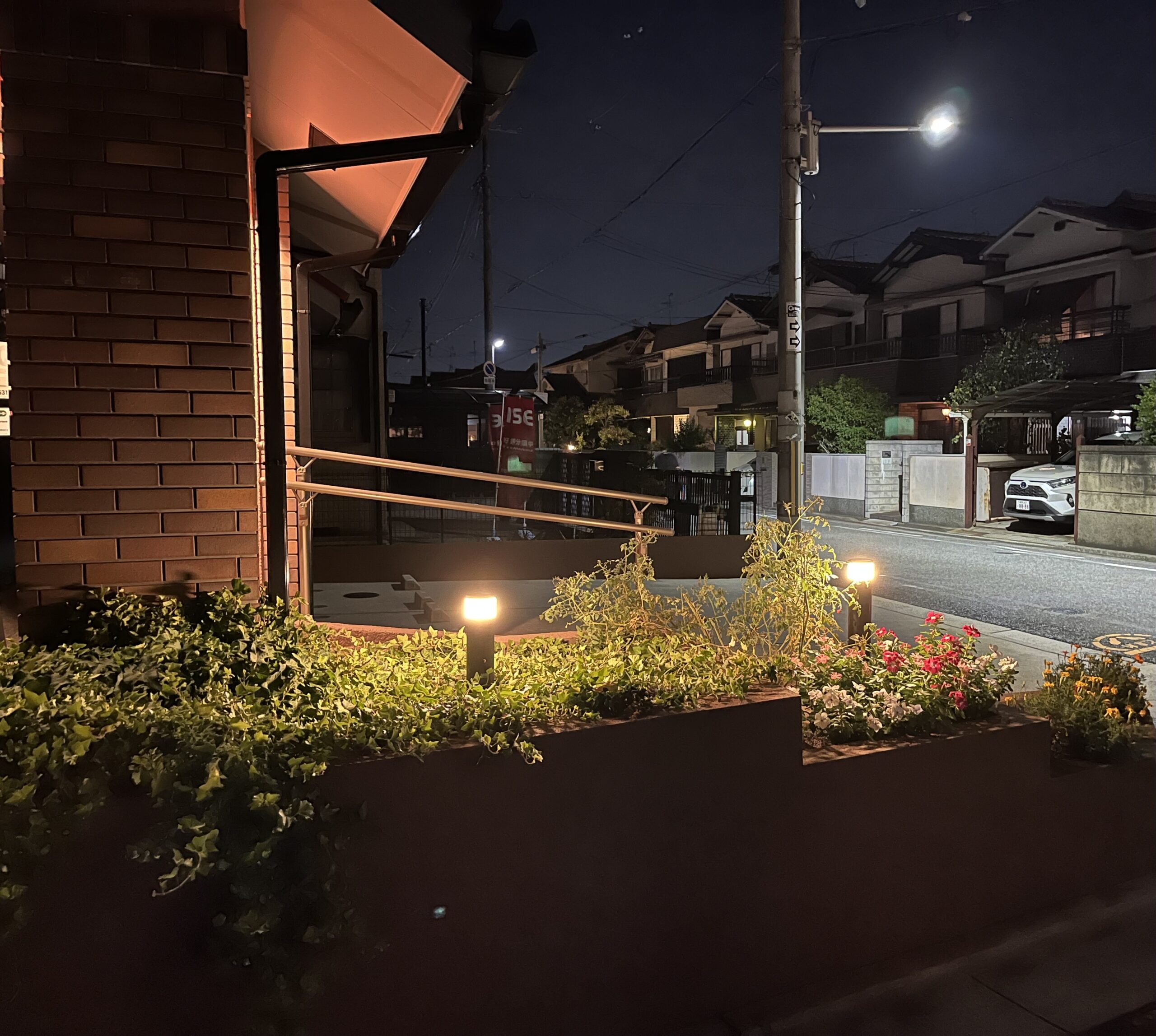 あと、休憩用のベンチと医院周りの照明を更に梃入れしました。