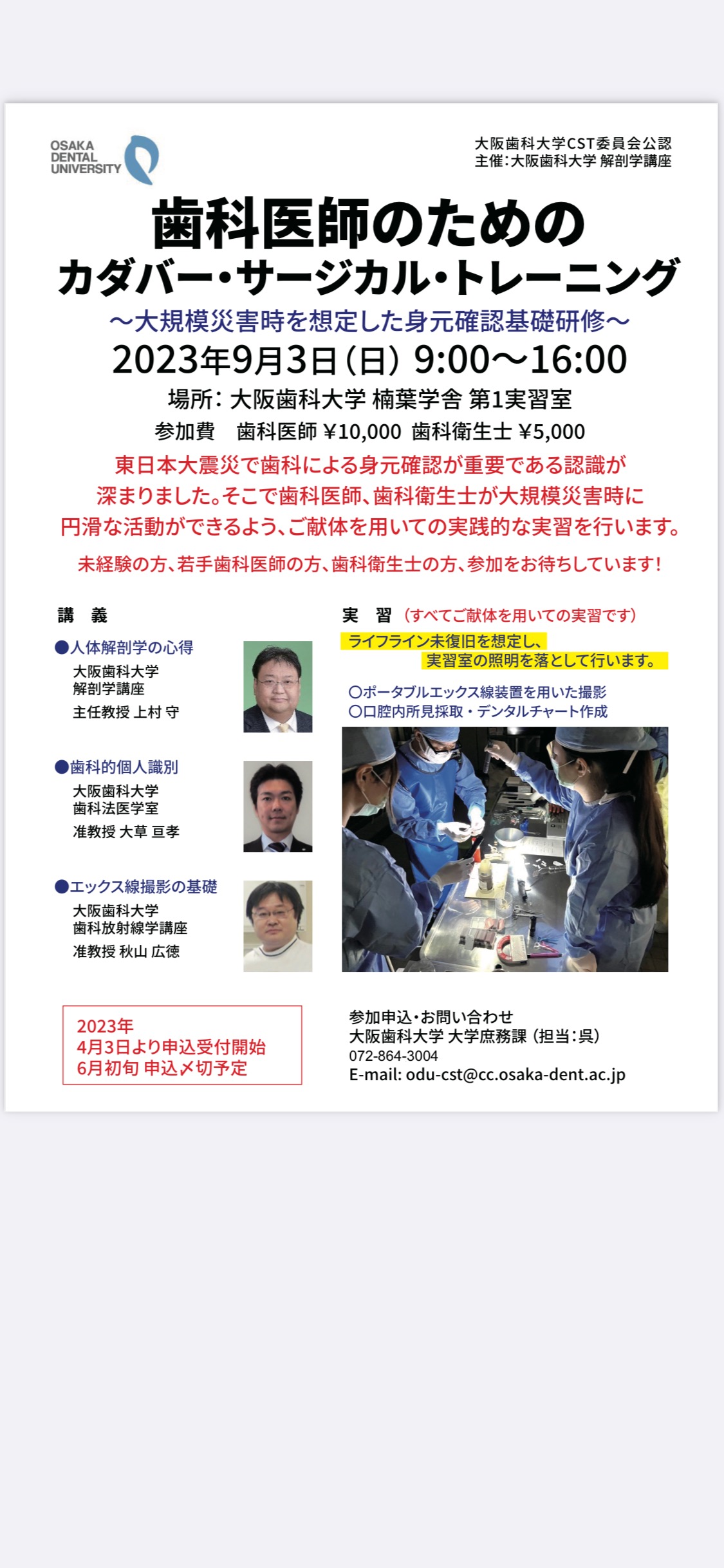 大阪歯科大学歯科法医学室の大草准教授よりお誘い頂き、参加してきました。